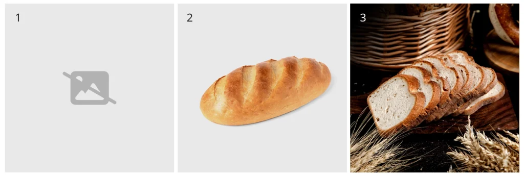 Obraz 1 – prawdopodobnie odpada od razu. Nawet nie rozważałbyś zakupu tego bochenka. Dlaczego miałbyś to zrobić? Nie masz żadnych informacji, aby zaufać produktowi.